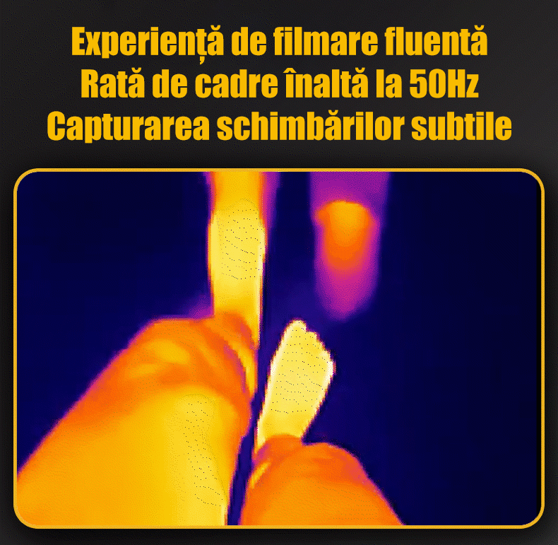 Cu doar 22 de grame, gata de utilizare imediat ce o conectezi, oferă o rezoluție de până la 512×384 pixeli, un interval de măsurare de la -20 °C la 750 °C, 50 Hz și 10 palete de culori.